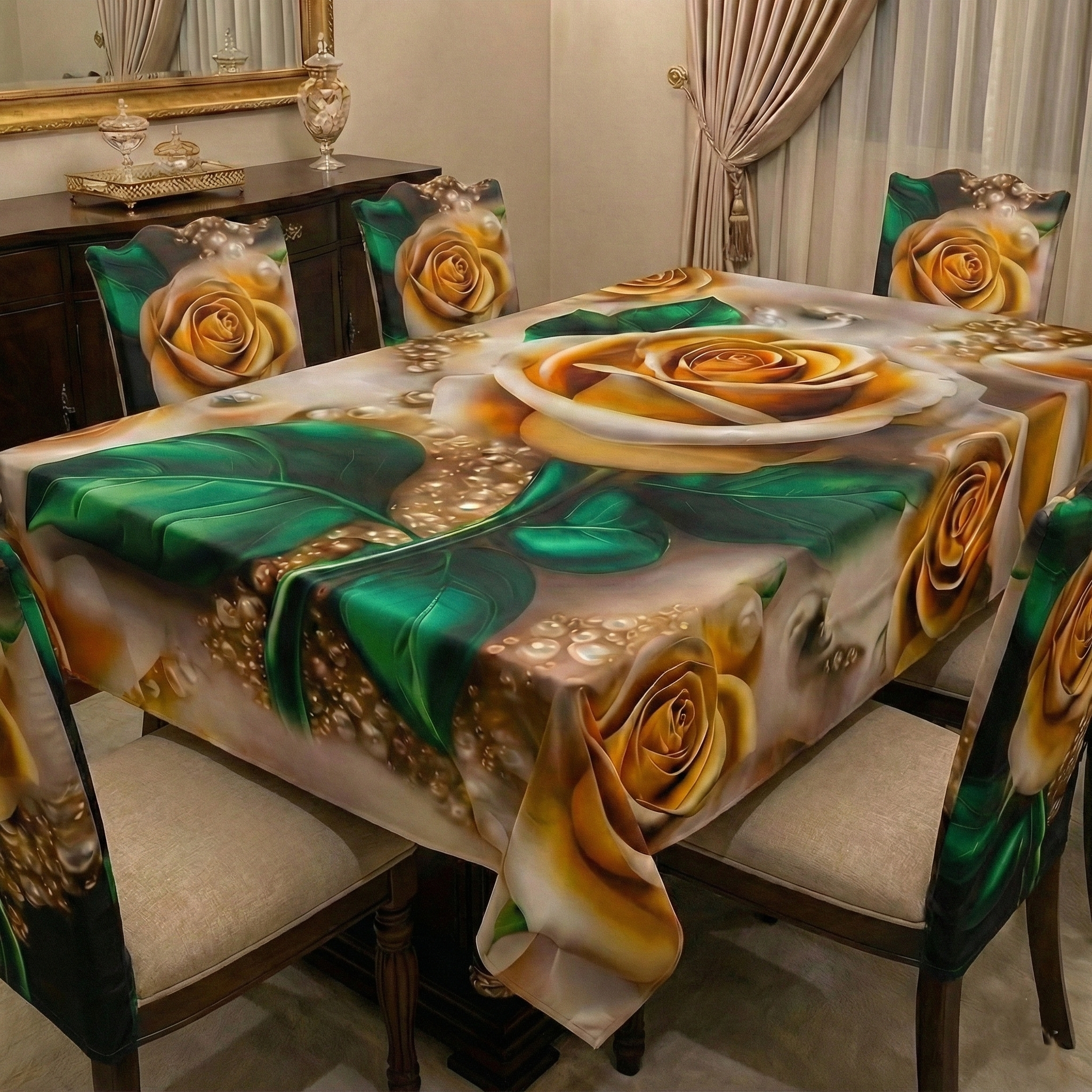 চমৎকার 3D প্রিন্টেড টেবিল ক্লথ সেট:""চায়না চিলি কটন কাপড়ের অসাধারণ মান ও আধুনিকতার অভিজ্ঞতা""