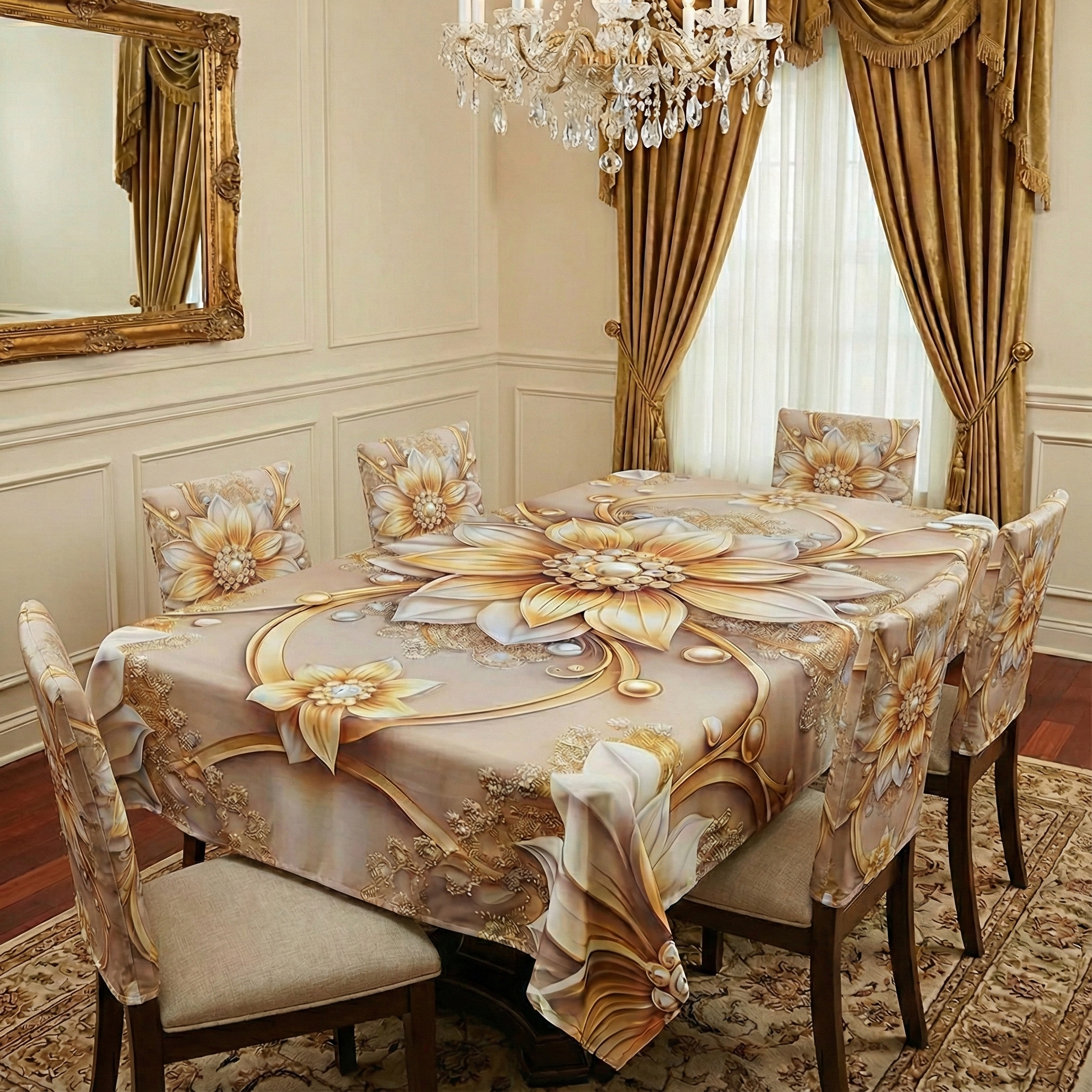 চমৎকার 3D প্রিন্টেড টেবিল ক্লথ সেট:""চায়না চিলি কটন কাপড়ের অসাধারণ মান ও আধুনিকতার অভিজ্ঞতা""